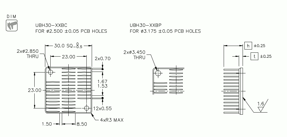 Heatsink dimension Heatsink part list Heatsink thermal data Board keepout patterns
